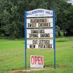 I'm driving down Rt. 997 and my day went from good to great in a flash--the Blueberry Sign was up at Blueberry Hill! Now everybody has a favorite fruit or vegetable and at a certain time of the year they take center stage--its their time in the Sun and you know it won't last more than a couple of weeks. For the next 6 weeks, till nearly the end of July, blueberries are center stage!